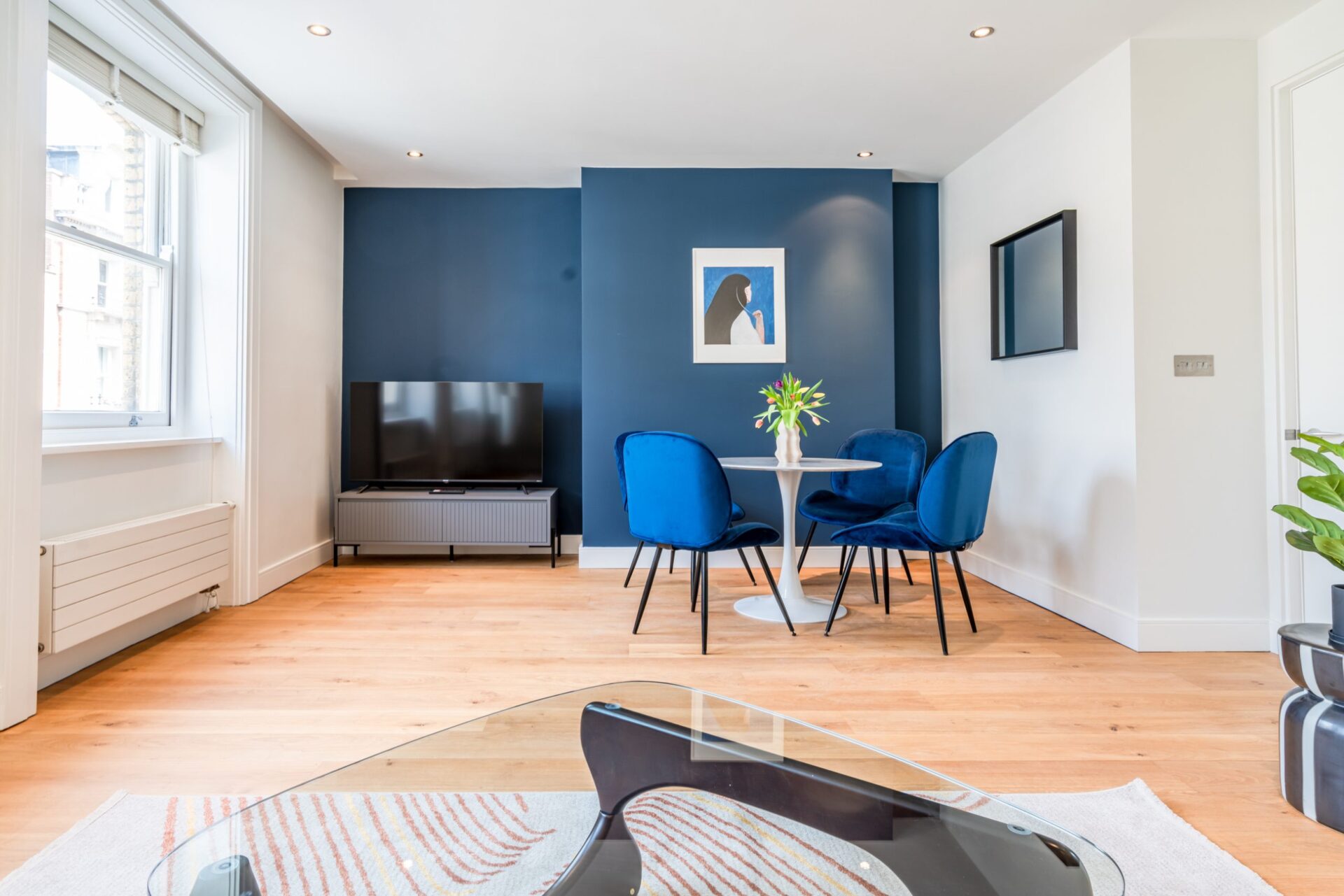 With views down onto Covent Garden’s famous Piazza and King Street one side, and inner courtyard views of St Paul’s Church on the other – this apartment really is special. Designed and furnished with a nod to provide a retreat away from the hustle & bustle of city living our guests here love the fact it stays quiet at night for such a central location. The apartment itself features an open plan living & kitchen area, modern bathroom with rainfall shower, and comfy bedroom housing king-sized bed. High-spec appliances, quality wooden flooring and curated social settings feature throughout.