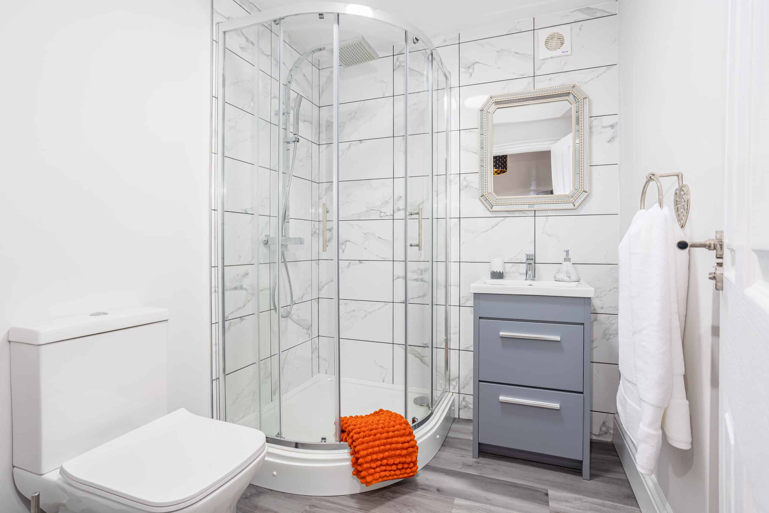 A modern and meticulously designed 2-bedroom, 2-bathroom apartment, ideally positioned in Grimsby to cater to the exacting demands of anyone staying away from home. Positioned in close proximity to the town centre, this serviced apartment offers an excellent combination of convenience and peacefulness. Only a brief 2-minute drive away, you’ll find the Freshney Place Shopping Centre, which boasts brands including Costa, Starbucks, TK Maxx, and M&S Food Hall. Within a mile, there are supermarkets, fitness centres, and an array of great dining venues. The strategic location also provides convenient access to the M180/A180 motorway links and within easy travelling distance to Scunthorpe and Hull.