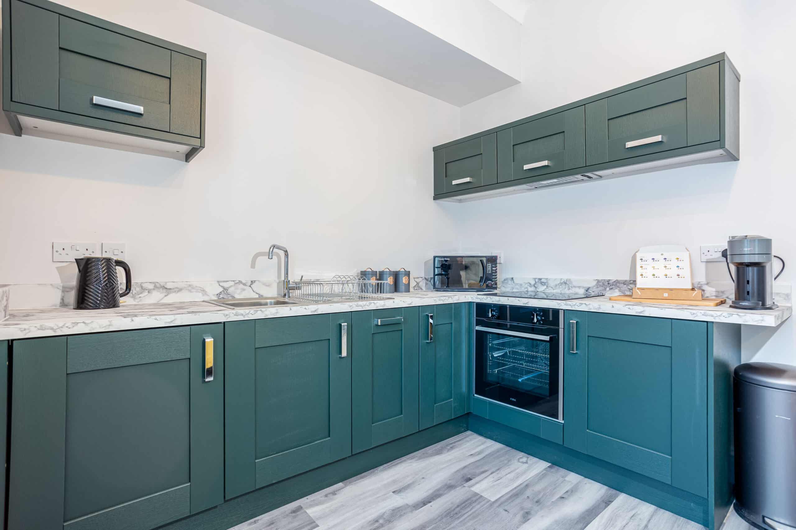 A sophisticated and well appointed 2-bedroom, 2-bathroom apartment in Grimsby, tailored to meet the needs of our discerning guests working away from home. This serviced apartment, situated just a stone’s throw from the town centre, strikes a perfect balance between accessibility and tranquillity. A mere 2-minute drive away, you’ll come across the Freshney Place Shopping Centre, featuring well-known brands like Costa, Starbucks, TK Maxx, and M&S Food Hall. Within one mile, you have access to supermarkets, fitness centres, and a variety of interesting dining choices. The strategic location also provides convenient access to the M180/A180 motorway links and within easy travelling distance to Scunthorpe and Hull.