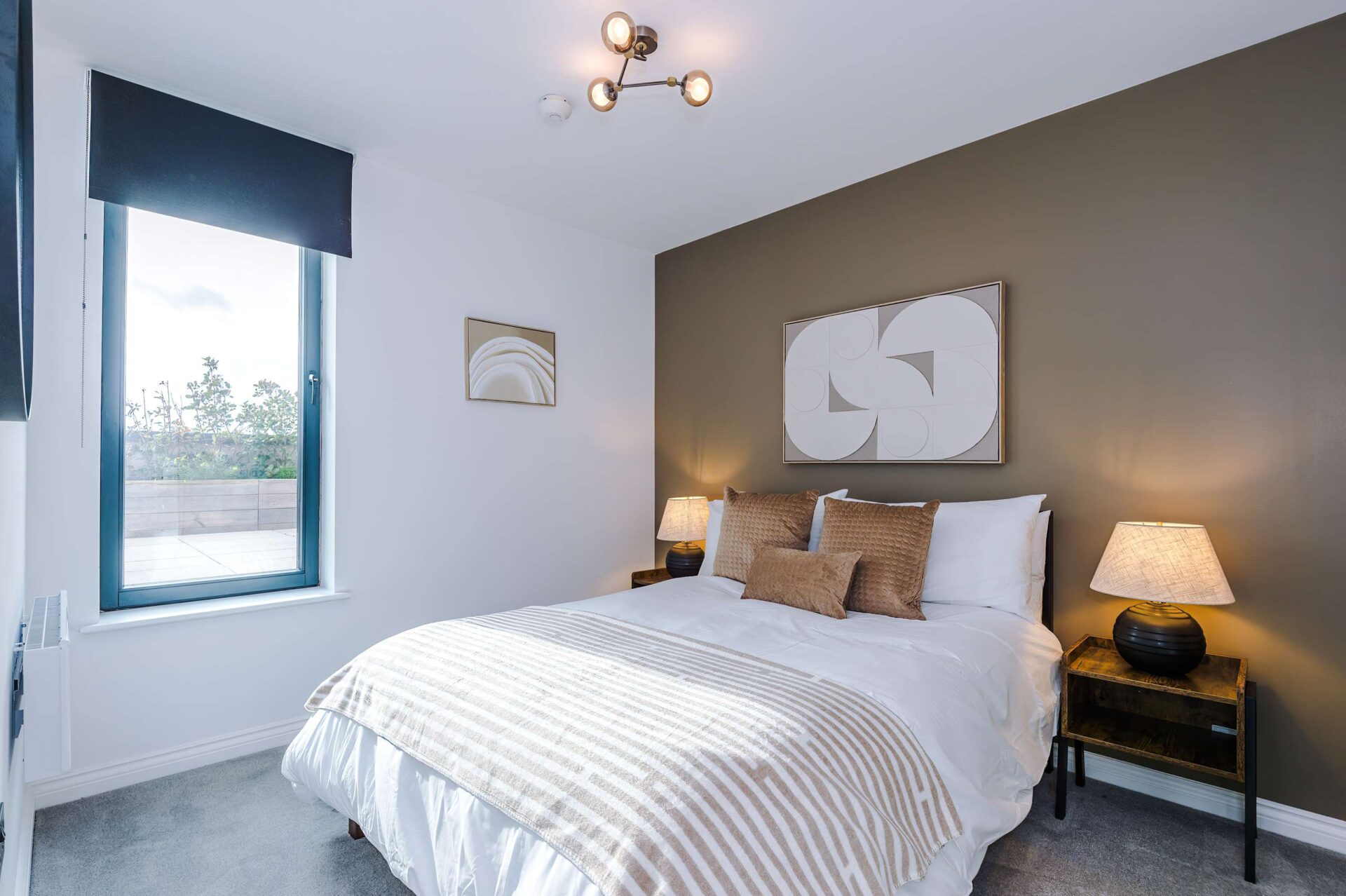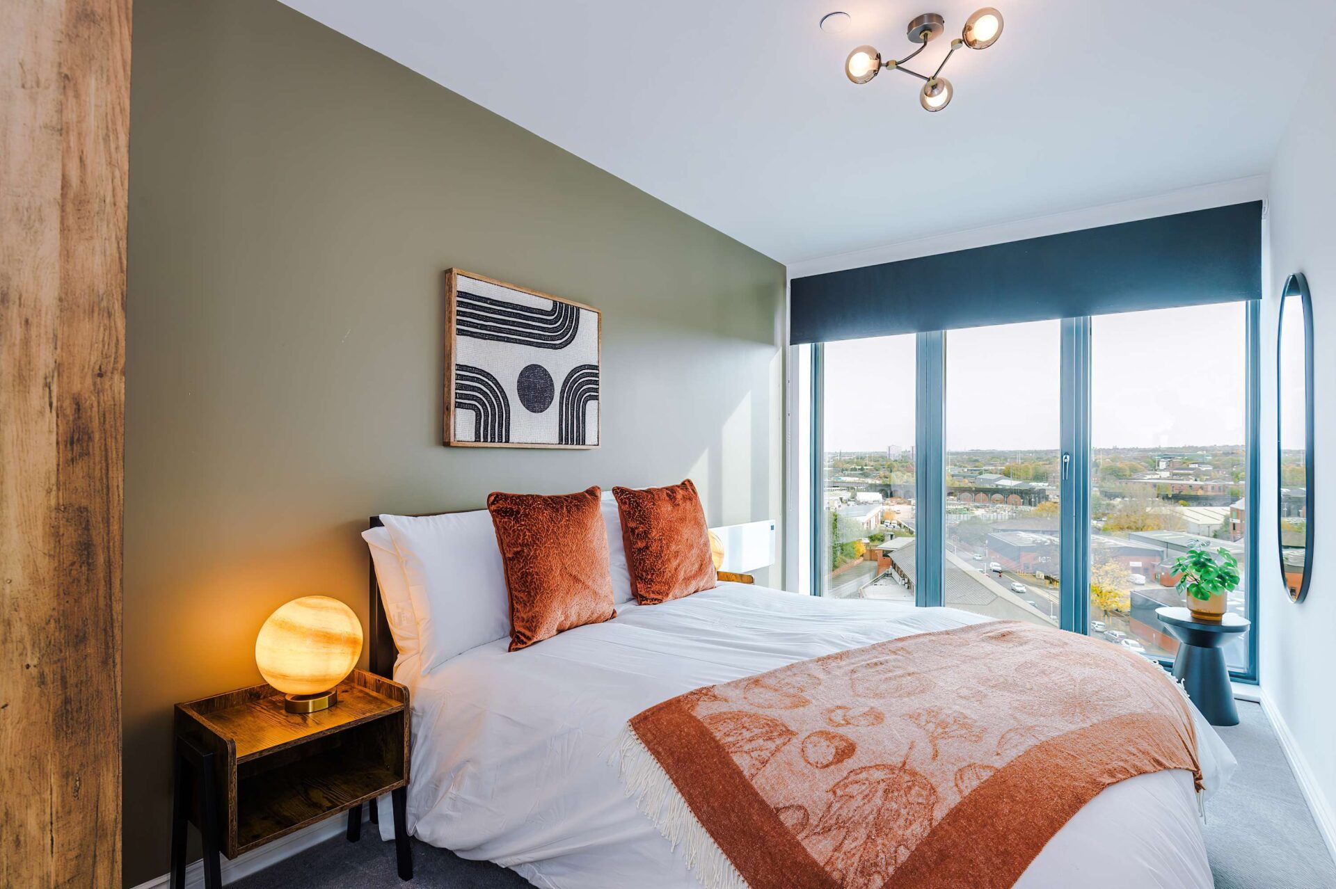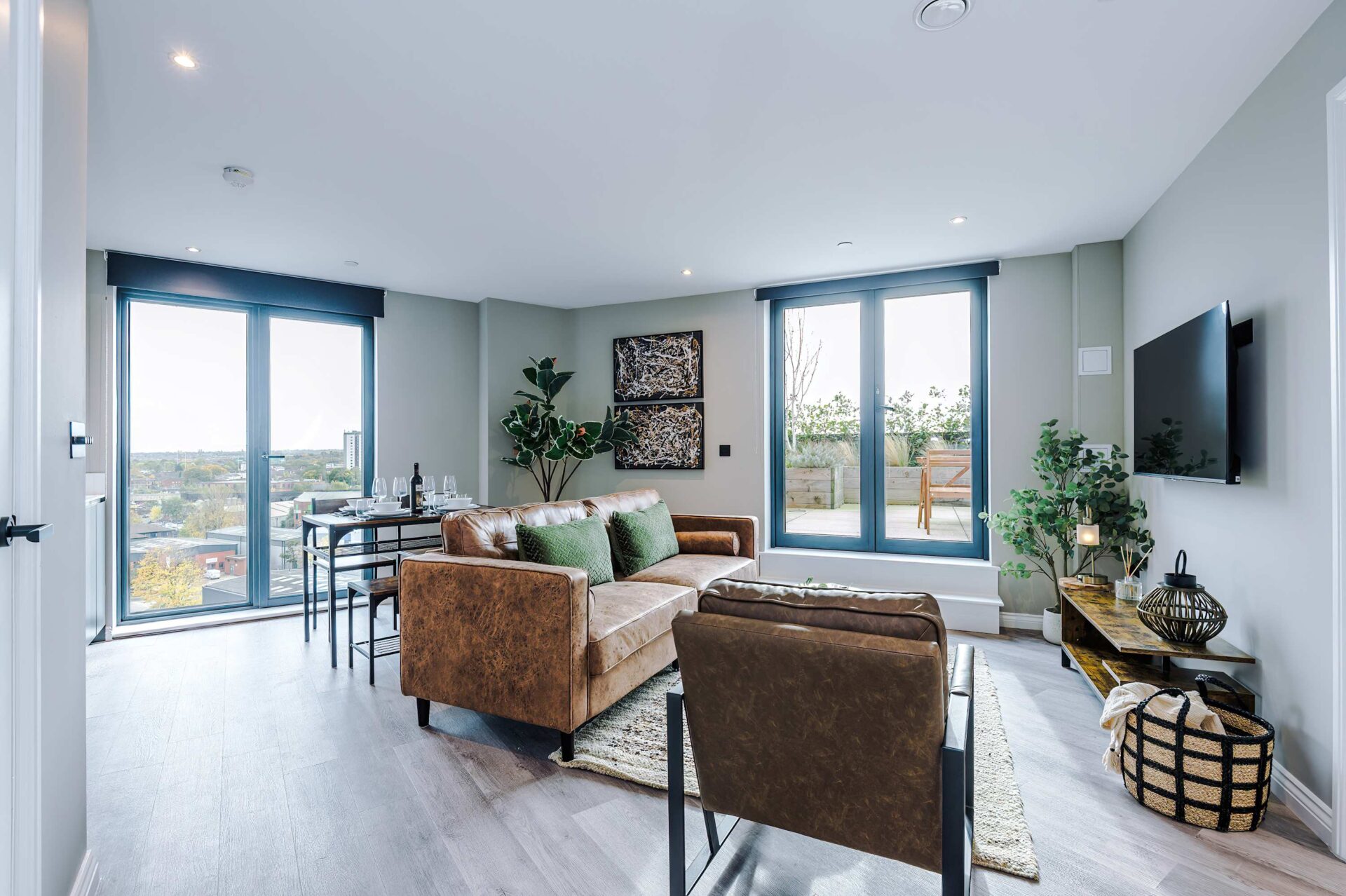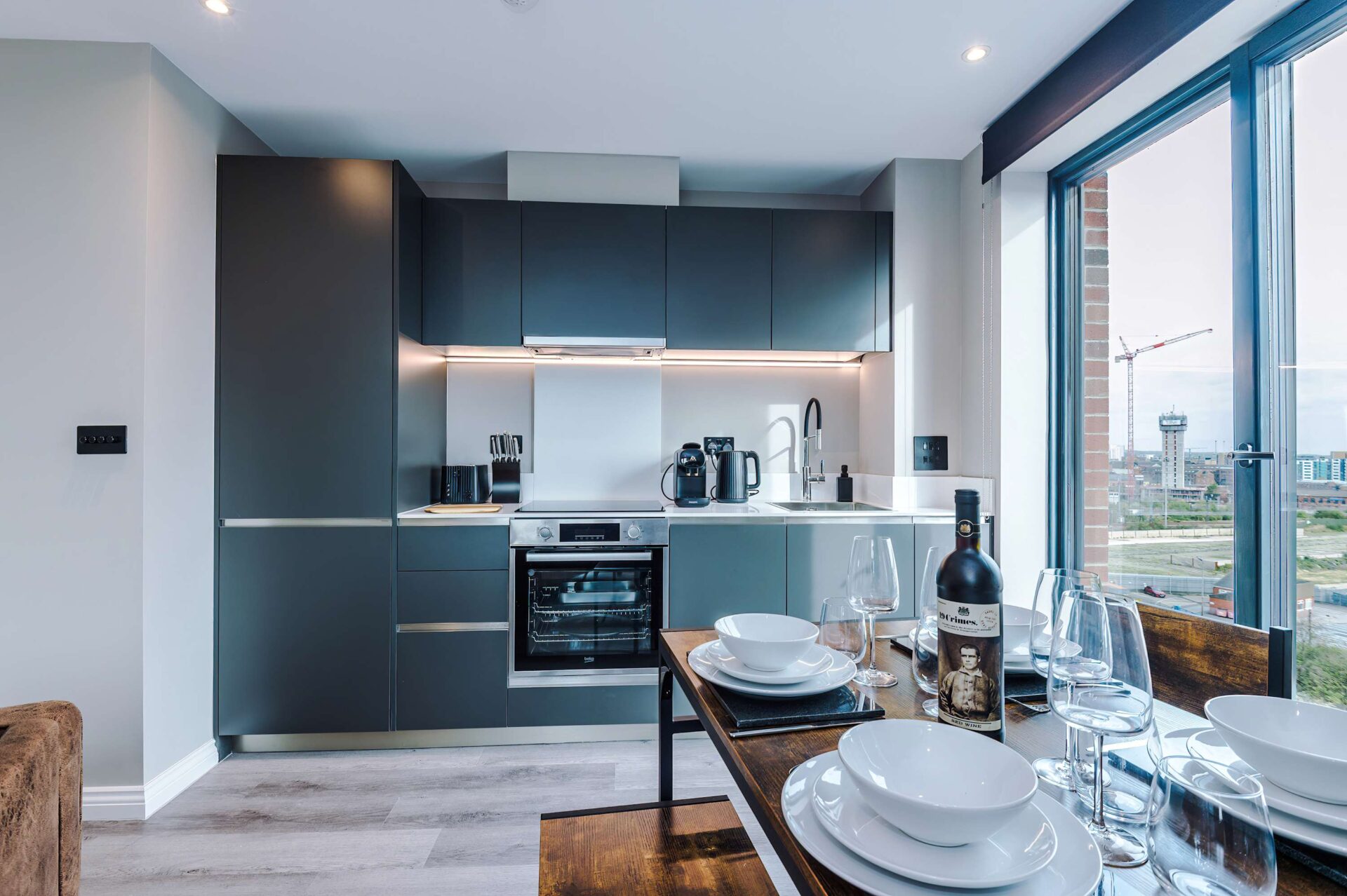 Step into a world of luxury as you enter our spacious and stylish apartment. Boasting high-end fixtures, hotel-like furnishings and floor-to-ceiling windows, the living area is a serene haven where you can unwind in style. The sleek, contemporary furnishings complement the warm, inviting decor, creating a perfect ambiance for relaxation. Living Room: Relax on plush sofas while enjoying your favourite shows on a state-of-the-art, wall mounted flat-screen TV. The open-plan layout ensures a seamless flow from the living area to the dining space. Kitchen: The fully equipped Porcelanosa kitchen features top-of-the-line appliances, including a dishwasher, oven and fridge freezer, along with all the cookware and utensils you need to whip up gourmet meals. Dining Area: Enjoy breakfast, lunch and dinner in the elegant dining area, complete with a chic table that comfortably seats 4, perfect for family dinners or entertaining guests.