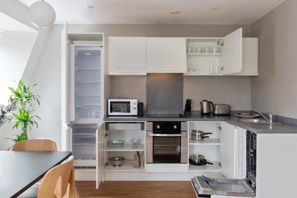 In the heart of Manchester, Cove Minshull Street are luxury apartments with a bright and contemporary design. Just 6 minutes’ walk from Piccadilly Rail Station and 300 metres from Piccadilly Gardens, each apartment has Wi-Fi access and a 24-hour front desk. Inside, the apartments feature a satellite TV, a seating area, and a bathroom with a hairdryer. They also include a stylish, fully-equipped kitchen with a dishwasher. Guests at Cove Minshull Street apartments can also enjoy free access to the on-site fitness suite. The Trafford Centre, one of Manchester’s premium shopping and leisure complexes, is just 14 minutes’ drive away. Old Trafford, home to Manchester United Football Club, is 10 minutes’ drive from the apartments. Manchester Aquatics Centre and Manchester Museum are both also less than 2 miles away.