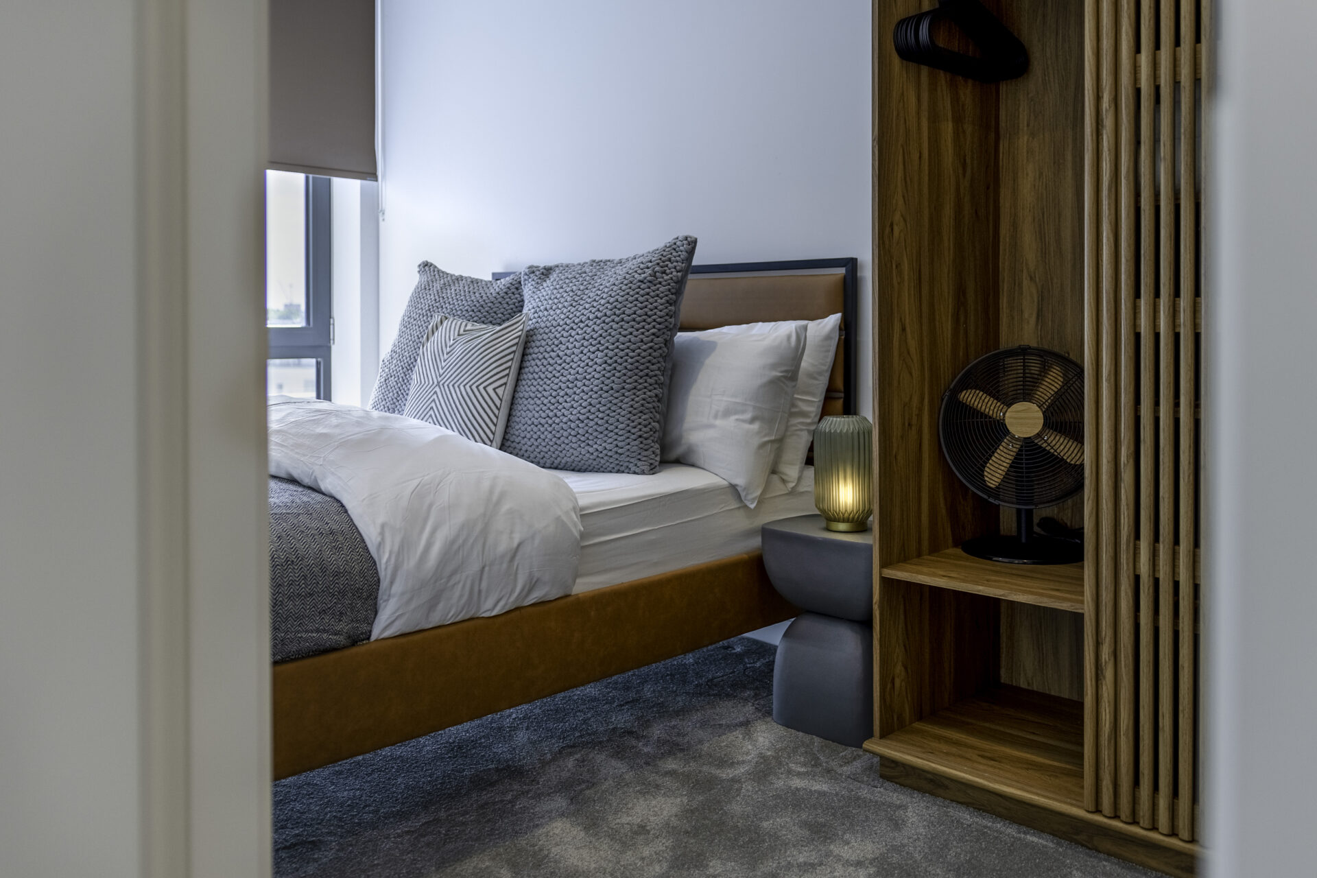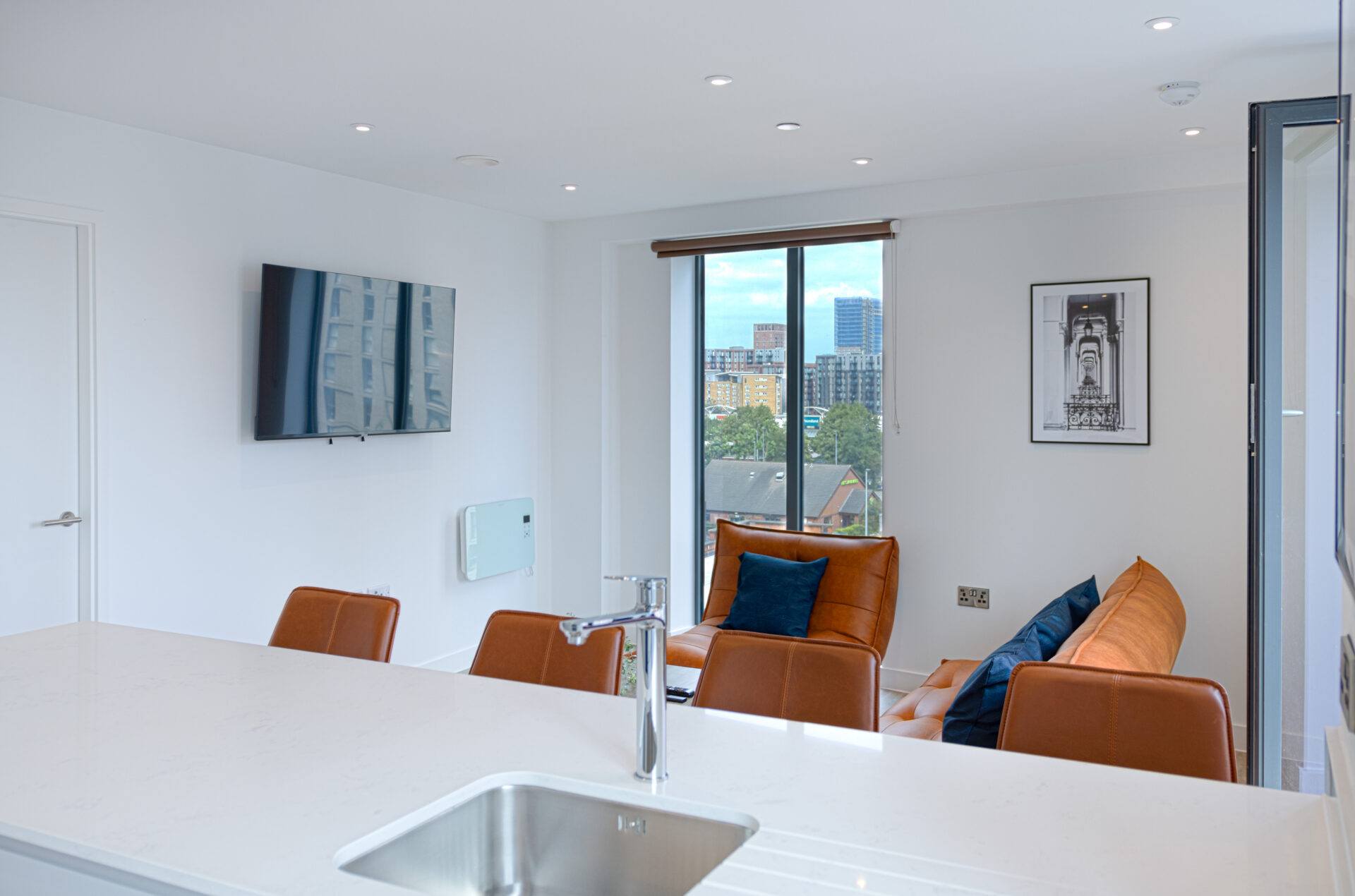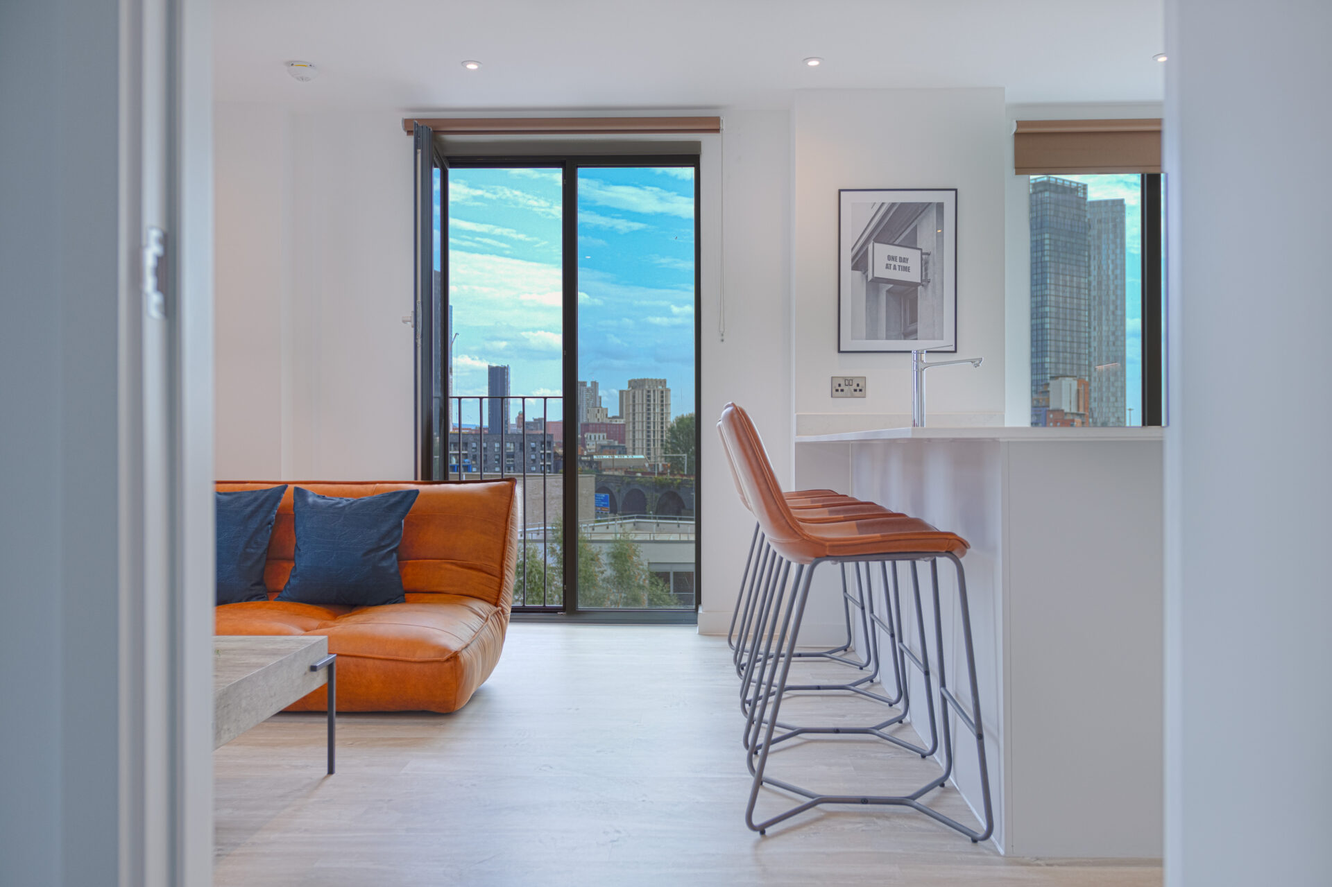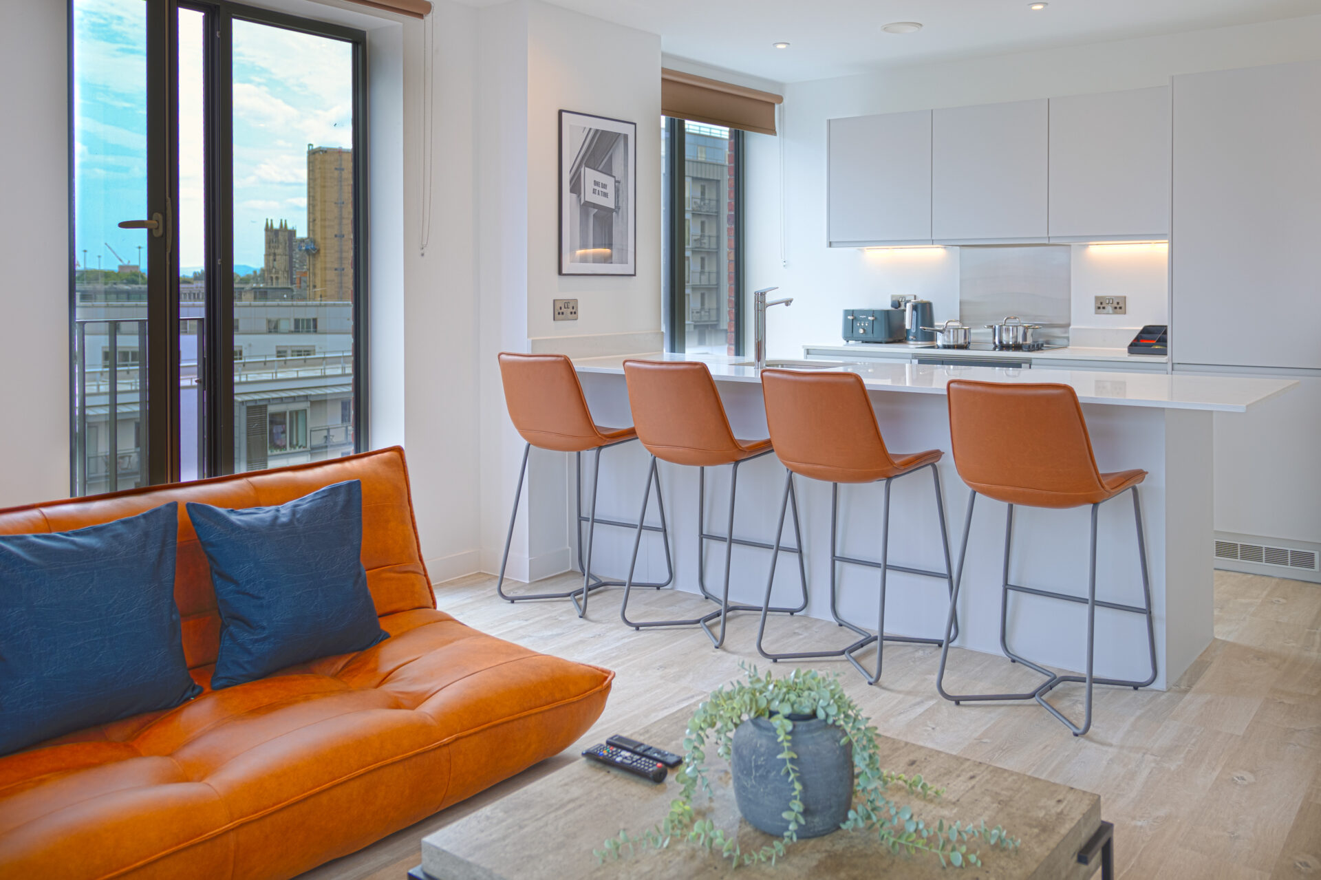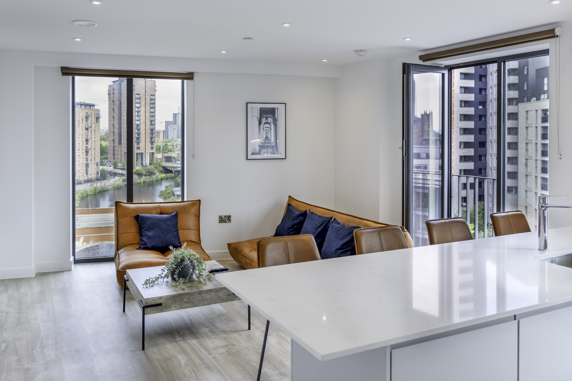2-Bedroom, 2-Bathroom Apartment in Manchester A luxurious 2-bedroom, 2-bathroom apartment in Manchester’s Regent Road area, offering sleek modern interiors, king-size beds, and high-end amenities. Enjoy a fully equipped kitchen, Smart TV, high-speed WiFi, and in-unit washer/dryer. Building features include a gym, co-working space, and riverside lounge. Just minutes from Castlefield, Spinningfields, and top attractions, Industria Suite is the perfect home for both business and leisure stays. The Space Bedroom 1 – King-size bed Bedroom 2 – King-size bed Two Marble-Tiled Bathrooms – Modern design with a combined bath and rainfall shower Fully Equipped Kitchen – Modern appliances, ample countertop space, and a Nespresso machine Open-Plan Dining Area – Stylish and functional for meals or entertaining Spacious Living Room – 55″ Smart TV High-Speed WiFi – Reliable connection throughout the apartment In-Unit Washer & Dryer – For added convenience during your stay Building Amenities – Gym, co-working space, and riverside residents’ lounge Cycle Room – Dedicated storage space for bicycles Elevator Access – Two lifts provide easy access to the7th-floor apartment